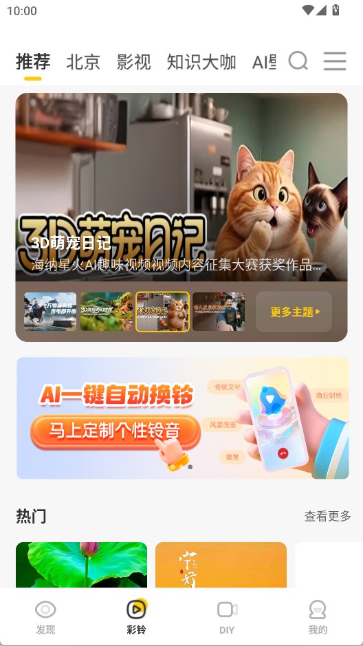 1、在发现界面可以像刷短视频一样寻找彩铃,点击右下角的按钮设置彩铃。