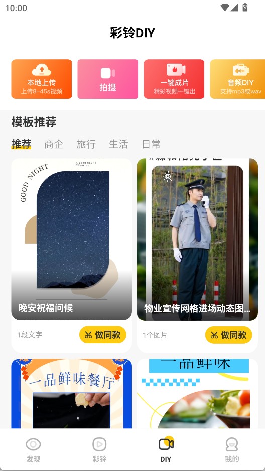 3、在彩铃DIY界面有丰富的彩铃模板,能一键做同款。