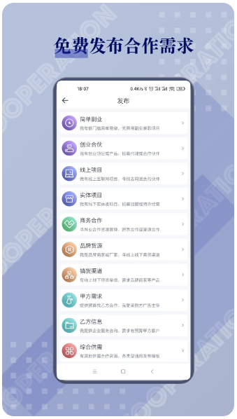 免费发布:在首页点击“发布”按钮,选择需求类型(如找项目、找代理、找团队),填写详细描述、联系方式和认证信息后提交。