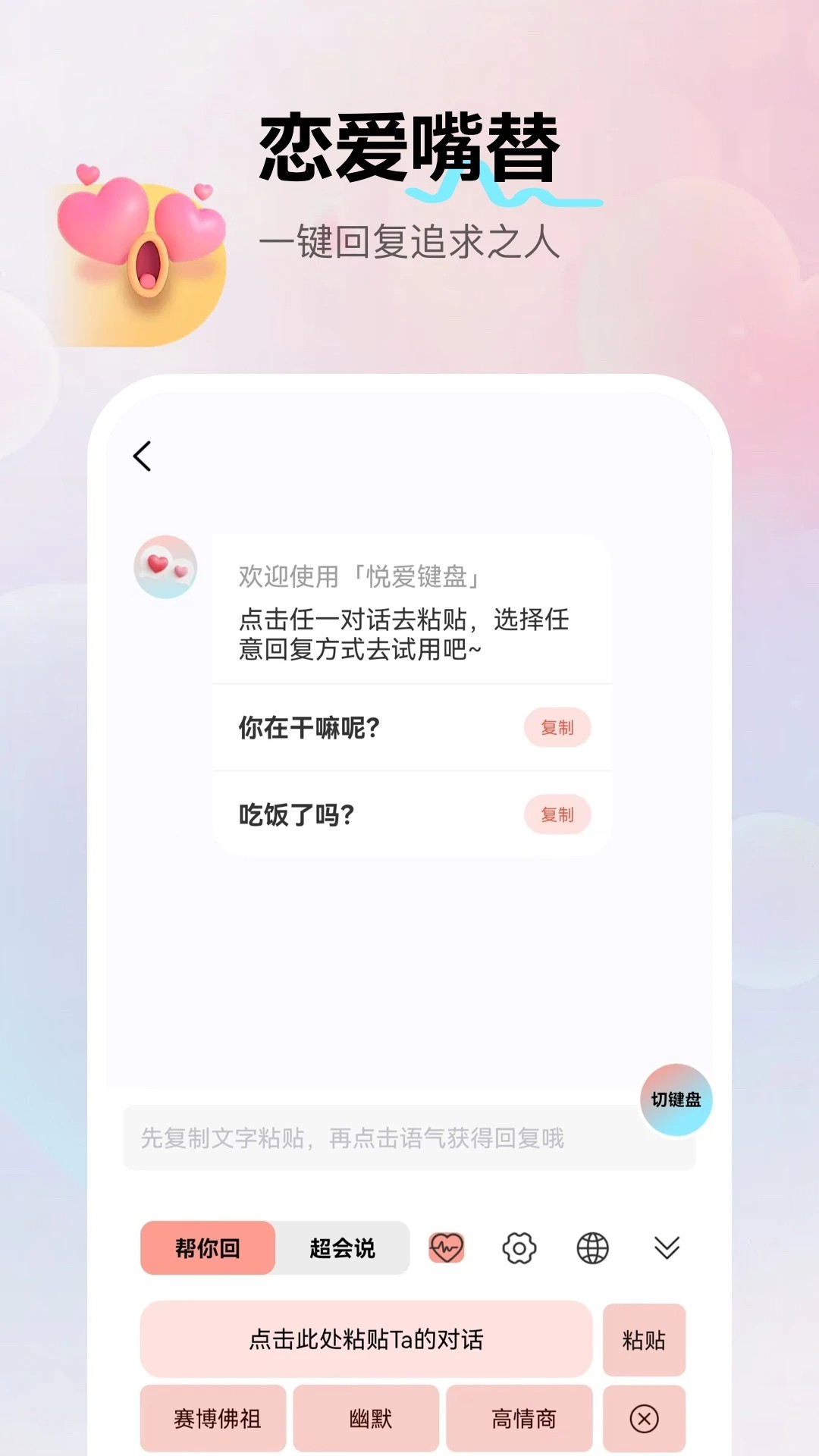 悦爱输入法是一款受欢迎的免费手机输入法软件,拥有简洁的界面和多种输入法方式,可以让用户在轻松愉快地输入文字,轻松提高用户的打字效率,还拥有大量的表情符号,可以让用户在聊天、社交等场景中更生动、形象地表达自己的情绪,自由享受优秀的输入打字过程,能完全满足所有使用需求,还具有简洁的界面设计,无需任何经验即可上手使用,随时智能联想汉字拼图来交流,有需求的用户欢迎下载软件吧。