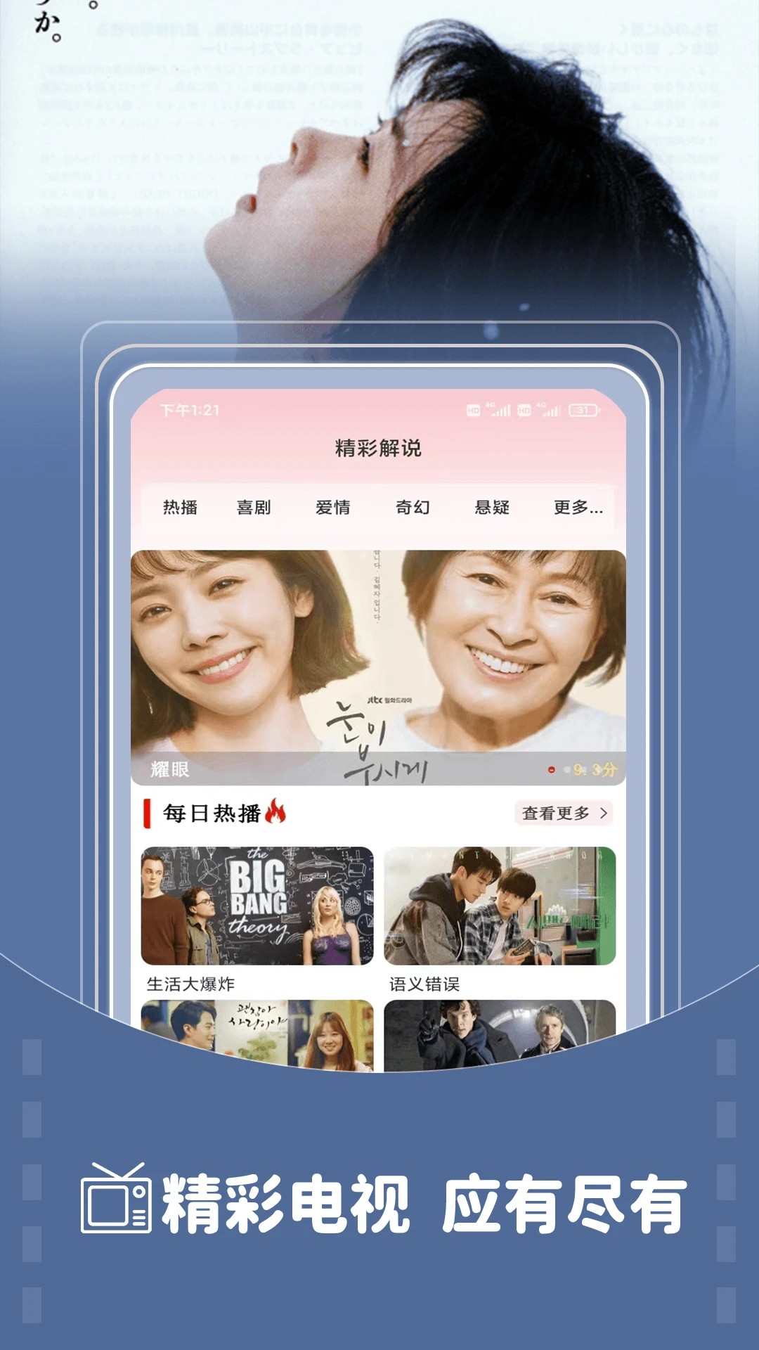 电视剧大全播放器是一款简单的免费看剧观影软件,拥有全面的影视首页设计,可以为用户推送各种精彩且受欢迎的电影,电视剧,综艺等资源,还提供全面的影视榜单,用户可以直接关注各种热门影视剧集的更新,灵活在线播放喜欢的影视剧,给用户带来全面的追剧服务和乐趣,还拥有全新的分享功能,允许用户自由分享各种好看的电影和电视剧,自由享受流畅的追剧服务和乐趣,还可以自由收藏各种精彩影视剧,有需要的用户欢迎下载。