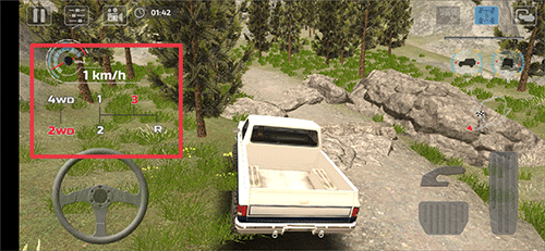 2、然后进入游戏,左下角的方向盘控制车辆的方向,右边控制车辆的前进和刹车。