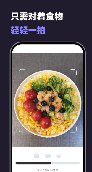2、不管是零食水果,还是家常菜等食物,只要拍照,就能识别,结果不止是卡路里,更有营养成分和饮食建议。