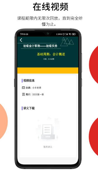 4、讲义下载 点击下载按钮在线下载视频课程讲义进行保存和管理。