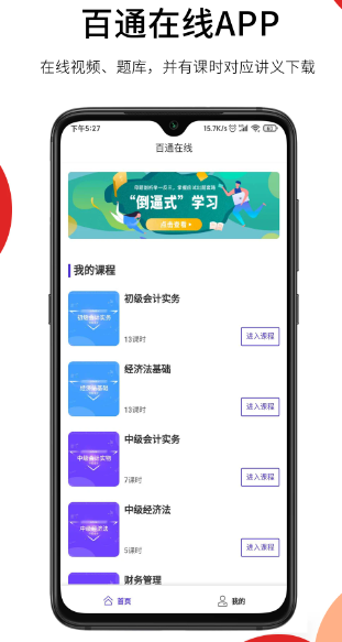 百通在线内含公务员、事业单位以及财务会计类题库、视频和讲义。课程按阶段学习,使知识点更加容易掌握,提升学习效率。通过历年真题了解考试的方向、题型及与之对应的知识点之间的联系,通过以往试题结合知识点预测考题及备考重点!制定学习计划,合理安排报考时间,参与名师直播课程,此外,百通在线拥有丰富的题库资源,考生可以在线练习试题,掌握考试知识点的出题规则,了解考试难度,帮助考生通过。感兴趣的朋友不要错过下载。