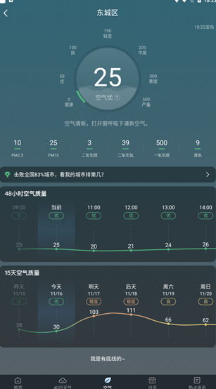 4、查看天气预报和空气质量信息可以给用户的日常生活带来极大的方便。
