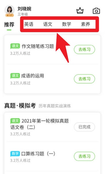 4、于此画面涵盖英语、语文、数学和素养,支持多科目同步辅导和专项训练。