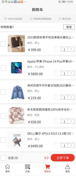 3、在购物车专区,用户可以查看你都添加了哪些商品。