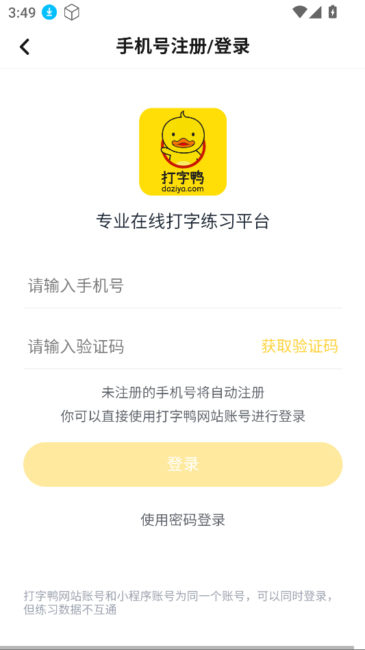 1、下载安装打字鸭,打开软甲注册登录。