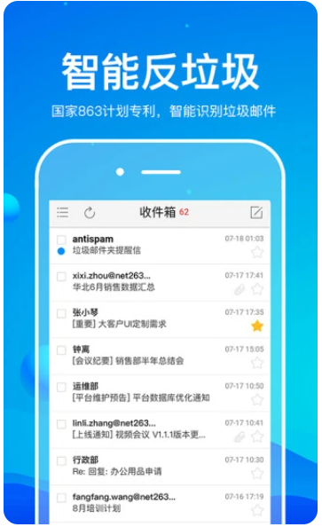4、263企业邮箱自主开发TAP智能垃圾防护网关,根据通过国家863个项目A级检测的AI+大数据智能分析、邮件交互关系准确区分垃圾邮件。