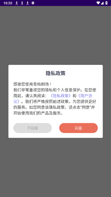 1、同意用户协议,进入青梅剧场。