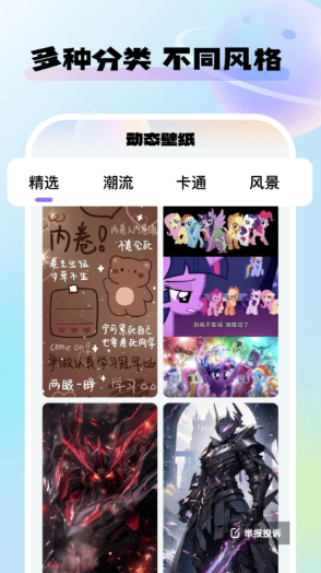 2、风格多样 用户可以自由使用指尖壁纸、3D壁纸、动态壁纸等各种风格的壁纸。