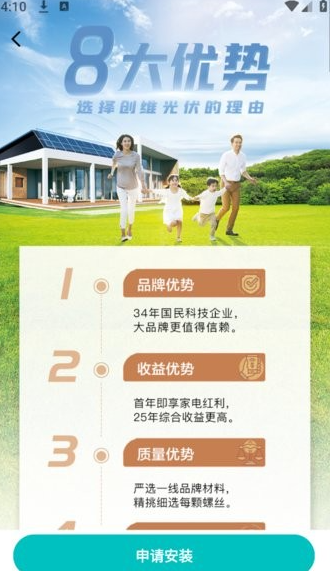 1、该软件提供在线申请功能,用户可以随时申请安装自己需要的光伏电站。