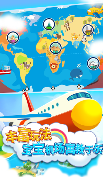 儿童宝宝机场宝宝在这里将会有丰富多彩的机场体验,可以去世界各地的景点去旅行,并且还可以参与到有趣的机场工作,包括售票员,安检人员等等都可以参与哦。贴近生活,提高宝宝的理解能力。引导儿童掌握旅行的注意事项,加强儿童的安全意识。新颖的玩法,精美的场景,促进宝宝健康聪明发展,让您的宝宝更聪明。有利于儿童的智力发育,发展和完善!