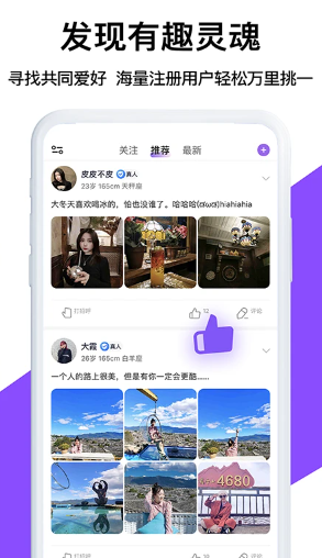 2、同城推荐 同时,帮助用户快速实现同城高颜值用户推荐同城高颜值用户。