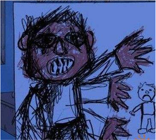 3、等到孩子完全拒绝和你交流的时候就会透露出一些信息,孩子会画一幅丑陋的长着三只手的男人想抓住小孩的画,这个时候就知道是老师对孩子做了可怕的事情。