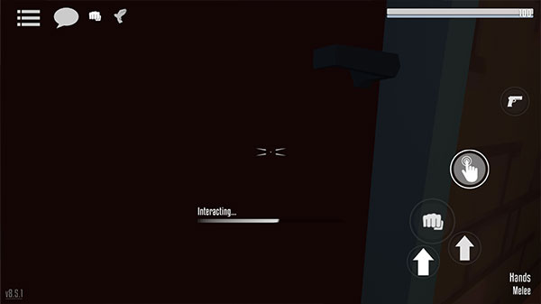 1、打开G沙盒仇恨,想要拿枪就必须先找到一把枪,找到枪后需要将准心放到枪上,这时屏幕左边会出现一个手指按钮,按住手指按钮即可拾取。