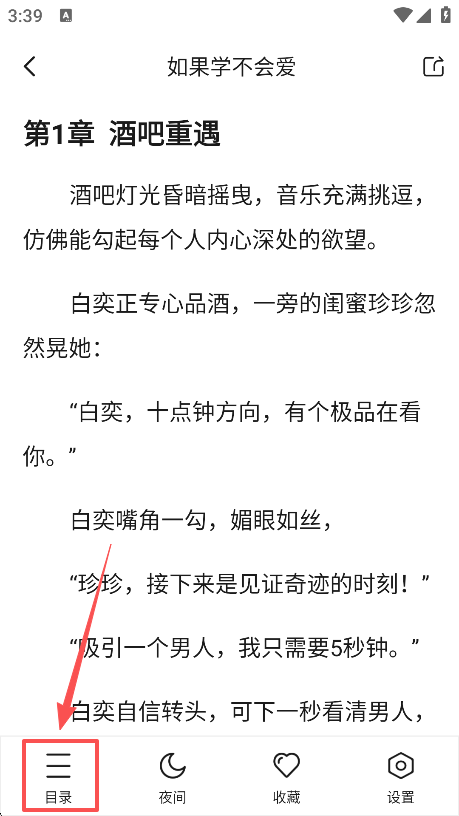 3、目录导航:阅读时点击屏幕任意位置可查看目录、设置阅读模式等,支持滑动选择章节。