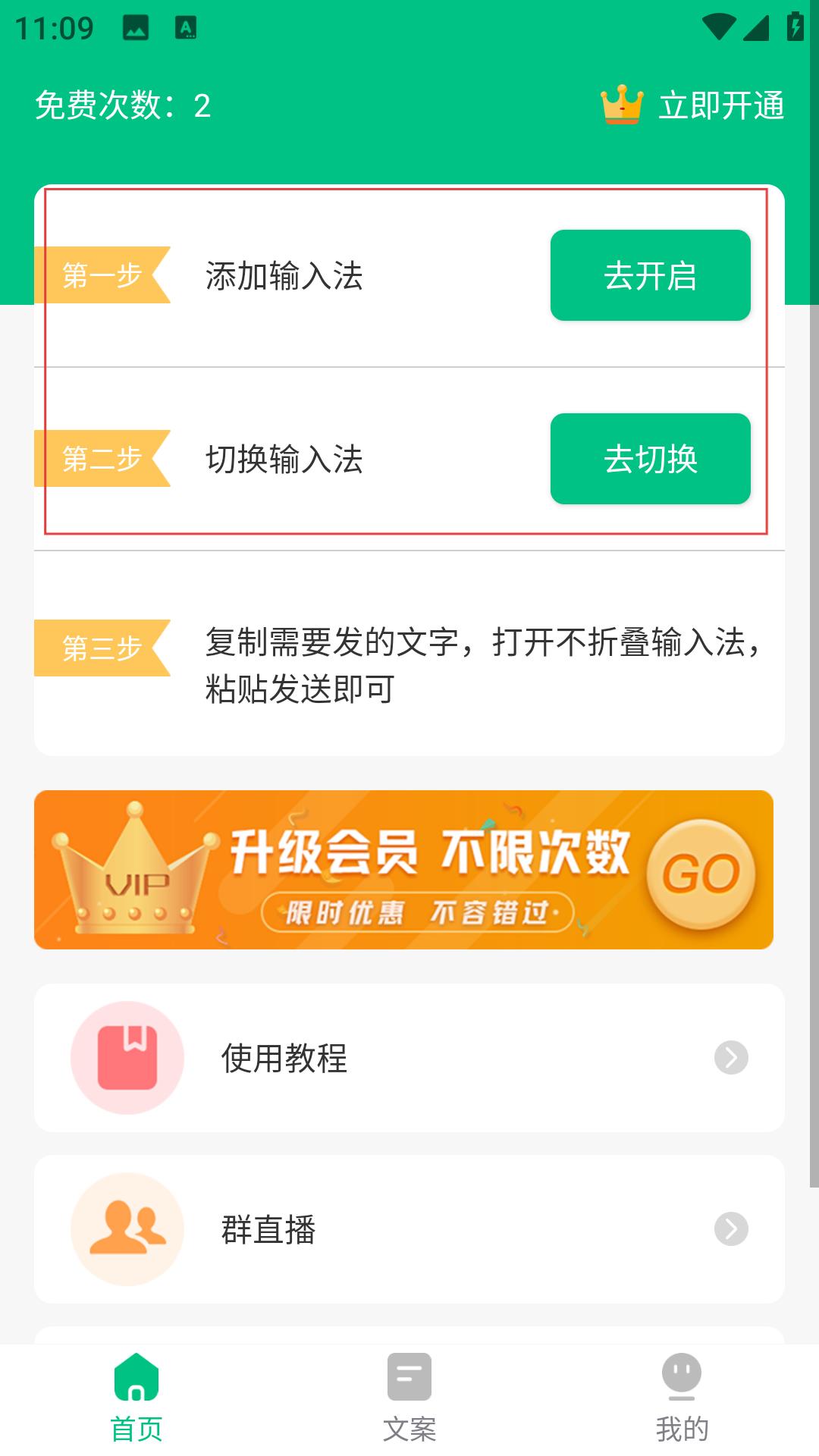 2、在首页,完成输入法设置,复制文字粘贴发送,用不折叠功能,助力微商沟通。