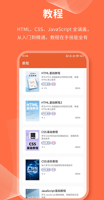 4、教程页面涵盖了HTML、CSS、JavaScript的所有知识点,从初学者逐步进阶到专家,让你将所有技能掌握在手中。