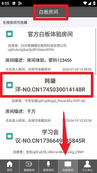 4、点选下方「白板房间」可进入图文互动区,适用于远程讲解、演示或头脑风暴等协作会议。