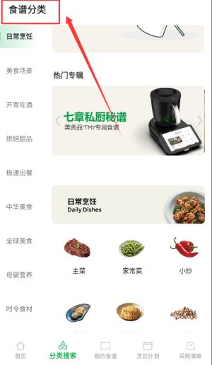 2、选择定制自己的食谱相册,也可以通过食材、食谱分类、饮食风格等关键词进行详细搜索。