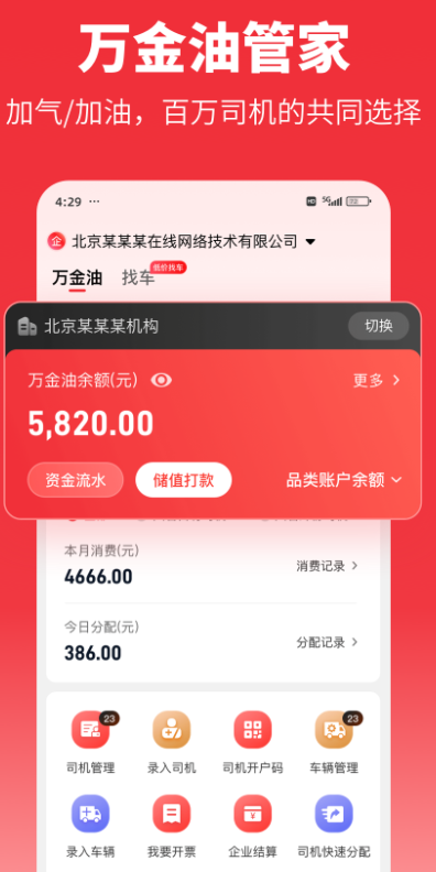 3、透明高效的管理,储值、资金分配、加油细节清晰可见。