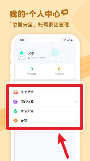 4、在“个人中心”页面中可查看账户下运动员数量、剩余积分,并可进行意见反馈、账号安全设置等管理。