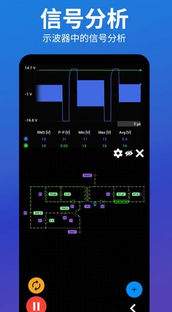 电路电压电流模拟器app是一个非常有用和强大的电路仿真模拟工具软件。用户可以使用该软件运行模拟电路。每个人都可以在软件内绘制电气图或电路图,模拟电路的运行,查看运行结果,获取数据,方便大家更好的改进和修改。可以设置各种电子元件的电路板,绘制电气图或电路图,模拟电路的运行。在仿真过程中,您可以查看许多变量,如电压和电流。