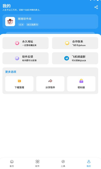 4、个人中心板块中可以查看下载管理,设置密码锁,还能分享软件。