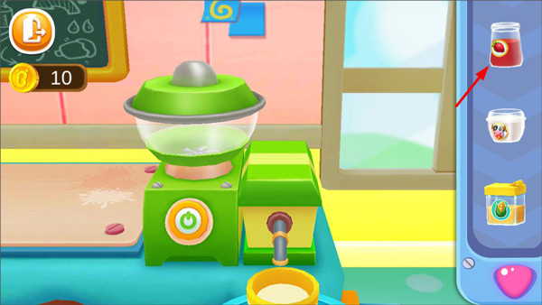 2、底料搅拌好之后,通过机器放到冰箱,玩家需要给雪糕添加各种果酱开启搅拌。