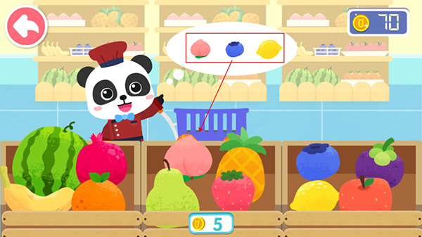 之后就可以让宝宝按照图上的需求选择合适的水果。