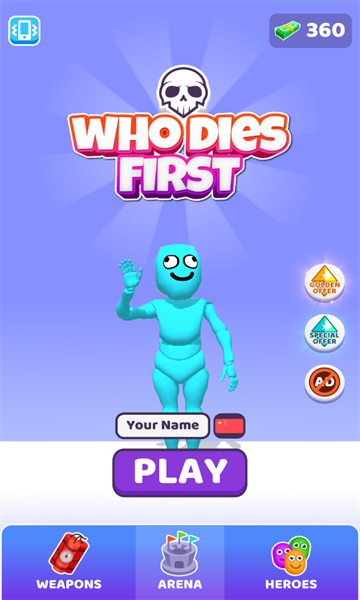 《谁先阵亡》是一款简单、休闲、有趣的迷你游戏。在游戏中,玩家可以与来自世界各地的玩家对战。这是一款全新的策略动作pk游戏。玩家可以通过投掷物品对对手造成伤害。有各种各样的设备和工具,以及许多特殊的皮肤。在回合制系统中,主要方法是通过向对方投掷武器来判断谁先死。这里的道具相当丰富,每个关卡的地形和武器都不一样,考验着玩家的策略和精准度。