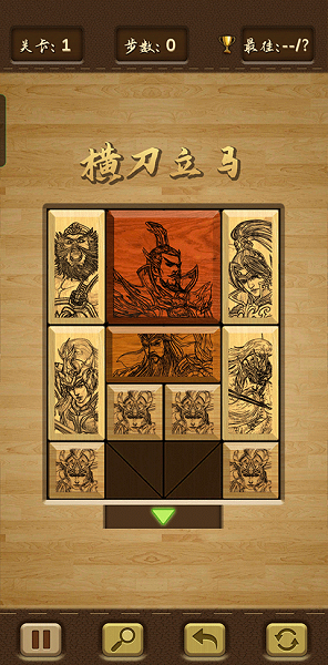 三国华容道谜题集是一款以三国为题材准备全新华容道游戏,各种任务会需要你移动棋子想方设法帮助曹操完成逃离安全出口的情况发生,来到这各种经典故事你都可在游戏当中游玩到,这样能去满足到玩家们对于娱乐休闲游戏挑战必备神器,在一个方形盘中(4x5的尺寸,代表华容道),通过移动各个棋子,帮助曹操从初始位置移到棋盘最下方中部,从出口逃走。不允许跨越棋子,还要设法用最少的步数把曹操移到出口。