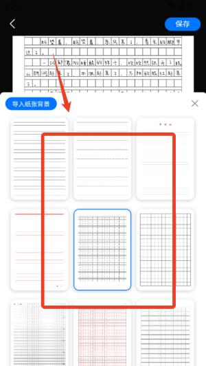3、进入背景设置,可以选择不同的纸张底色和纹理,比如泛黄的旧纸效果或者干净的横线纸。