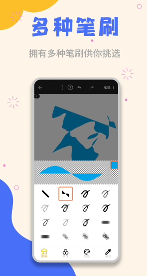 1、画笔大小无极调节,拥有16581375种颜色可选。