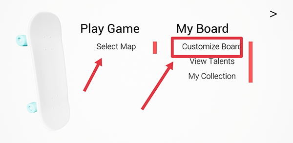 2、进入后玩家可以先点击Customize Board为滑板设计你喜欢的颜色。