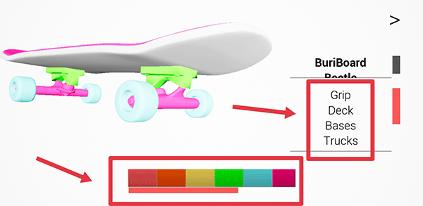 3、然后依次为Grip、Deck、Bases、Trucks选择你喜欢的颜色,并设计出独一无二的滑板。