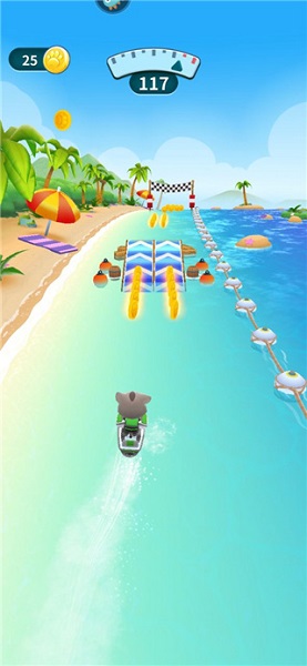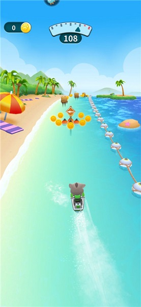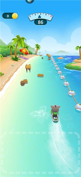 汤姆猫的摩托艇是一款非常激情澎湃汤姆猫系列的跑酷游戏,游戏采用卡通风格的画面,Q版的角色造型设定,在这里有你熟悉的安吉拉,汉克狗等等熟悉的角色,并且游戏的画风也极具风趣,再加上丰富的关卡设定、场景设定以及道具设定可以给玩家带来非常好的游戏体验感!同时为了能够创造出真实的情景,游戏加进了一些细微有趣的元素,比如障碍物、惯性,水的冲力等。游戏背景讲述的是汤姆猫和小伙伴的海边度假屋被无情的海啸摧毁,潮汐平静后,剩下的只有废墟和摩托艇。