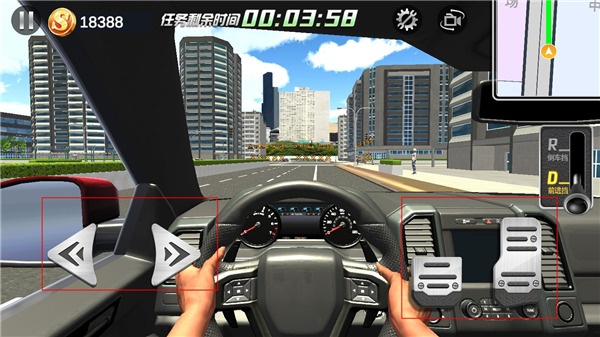 1、打开游戏,映入眼帘的是,游戏中的车辆在油门、刹车方面都做到了真实还原。其档位设置参照了自动挡车型,仅有前进档和倒车档。要是想倒车,得先挂上倒车档,接着踩住最右边的油门才能实现。