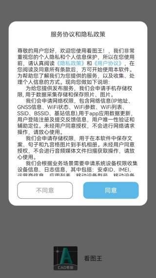 1、下载安装软件后进入,弹出服务协议和隐私协议,点击同意。
