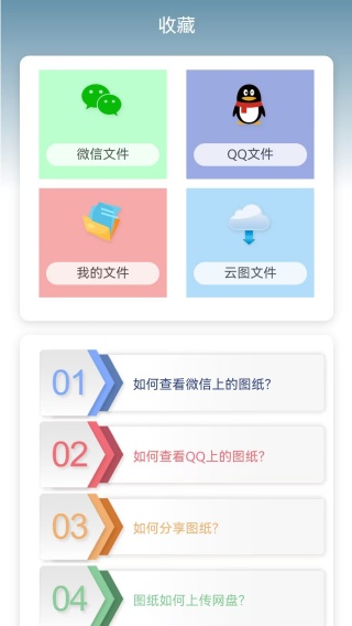 2、点击收藏,是可以去查看微信,QQ,我的文件,云图文件的。