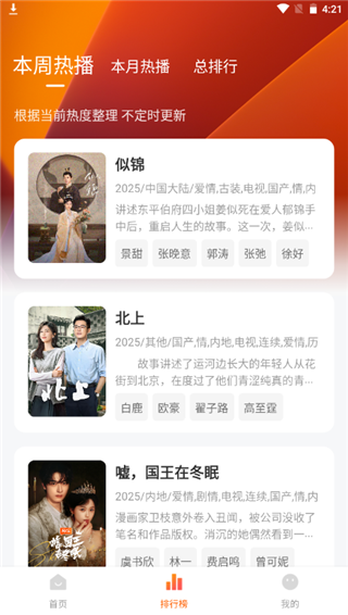 3、这款软件还内置了热播榜单,本周、本月、总排行的所有榜单内容都能看到。