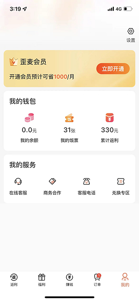 5、在“我的”里可以查看返现金额,返现是不需要收取手续费的,无门槛即可返现,如果有啥问题也可以找客服询问。