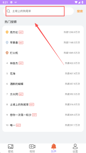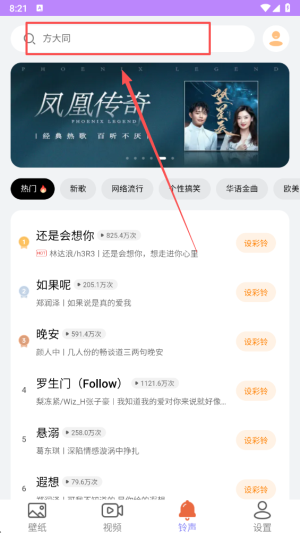 2、点击上方的搜索栏,方便快速找到你想要的歌曲或音效。