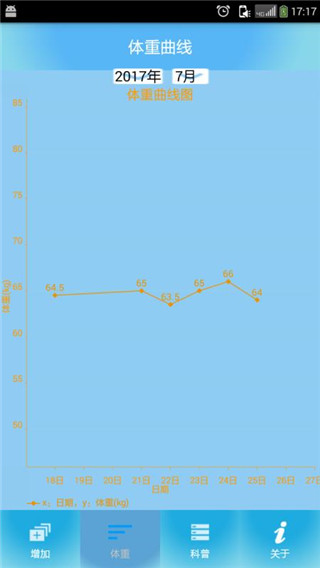 3、系统将自动生成可视化健康趋势图表,清晰展示体重变化曲线。