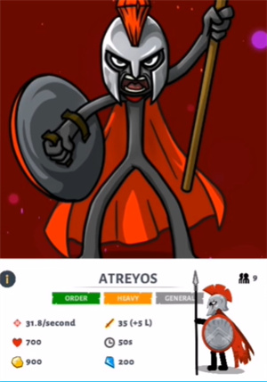 5、矛士:一身红色披风,银色战甲,手握战斧属于全能战士,还能抵御大部分远程攻击以及降低伤害。