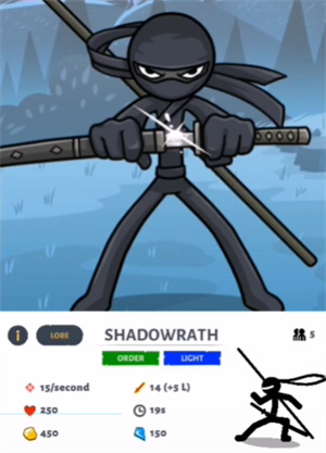 7、忍者:神出鬼没的忍者角色,这个角色的攻击力高,不过血量低对于一些速战速决的场合战役来说十分的重要。