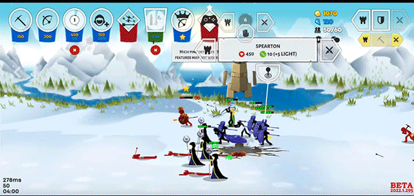 3、命令你自己的火柴人开始在地图上的战斗。快速解锁部队,并匹配适当的技能和物品,以参与战斗。