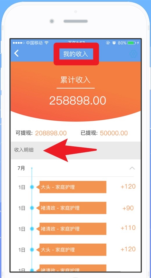 5、在“我的收入”页面可查看累计收入、可提现金额和已提现金额,点击收入明细可查看具体记录。